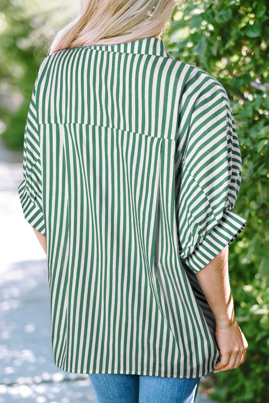 Green Stripe Dolman Sleeve Oversize Shirt