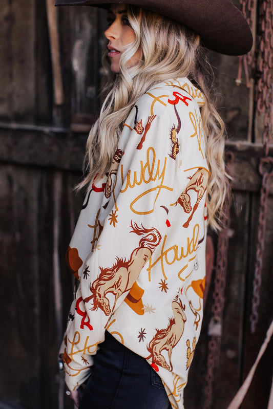 Rose Red Floral Allover Print Buttoned V Neck Oversized Shirt