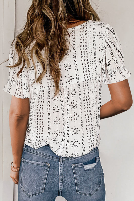 Sky Blue Flutter Sleeve Frilled Neck Textured Blouse