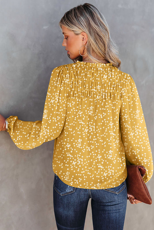 Yellow Split Neck Fall Printed Crinkled Blouse