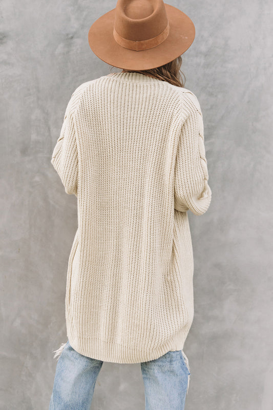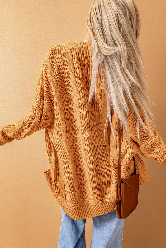 Apricot Drop Sleeve Cable Knit Cardigan with Slits