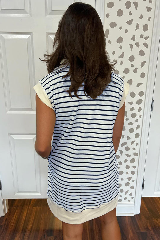 Blue Stripe Quarter Zip Collared Cap Sleeve Mini Dress