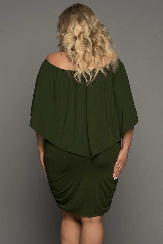Khaki Waffle Crinkle Patchwork Frilled Flare Dress