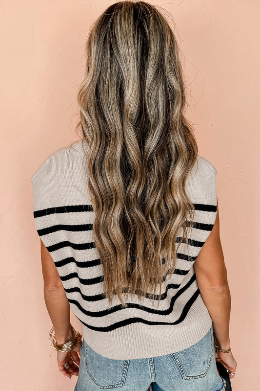 Black Stripe Turn-down V Neck Sweater Tank Top