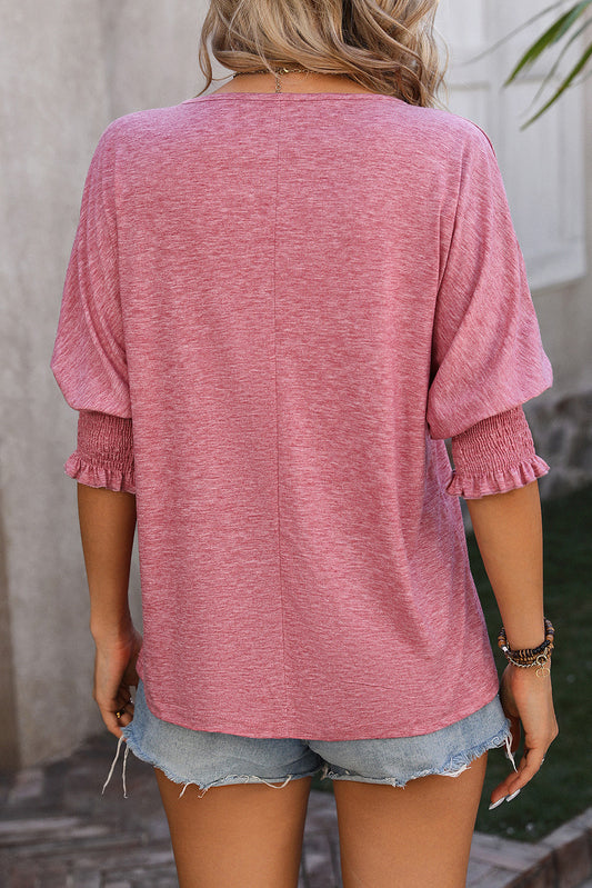 Apricot Pink Button Detail Batwing Sleeve Casual Tee