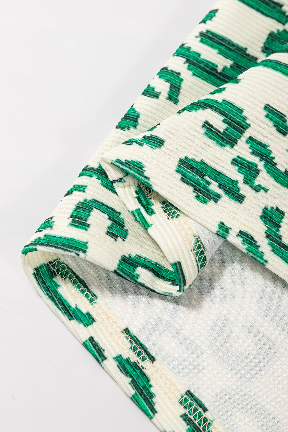 Blackish Green Leopard Print Mock Neck Puff Sleeve Top