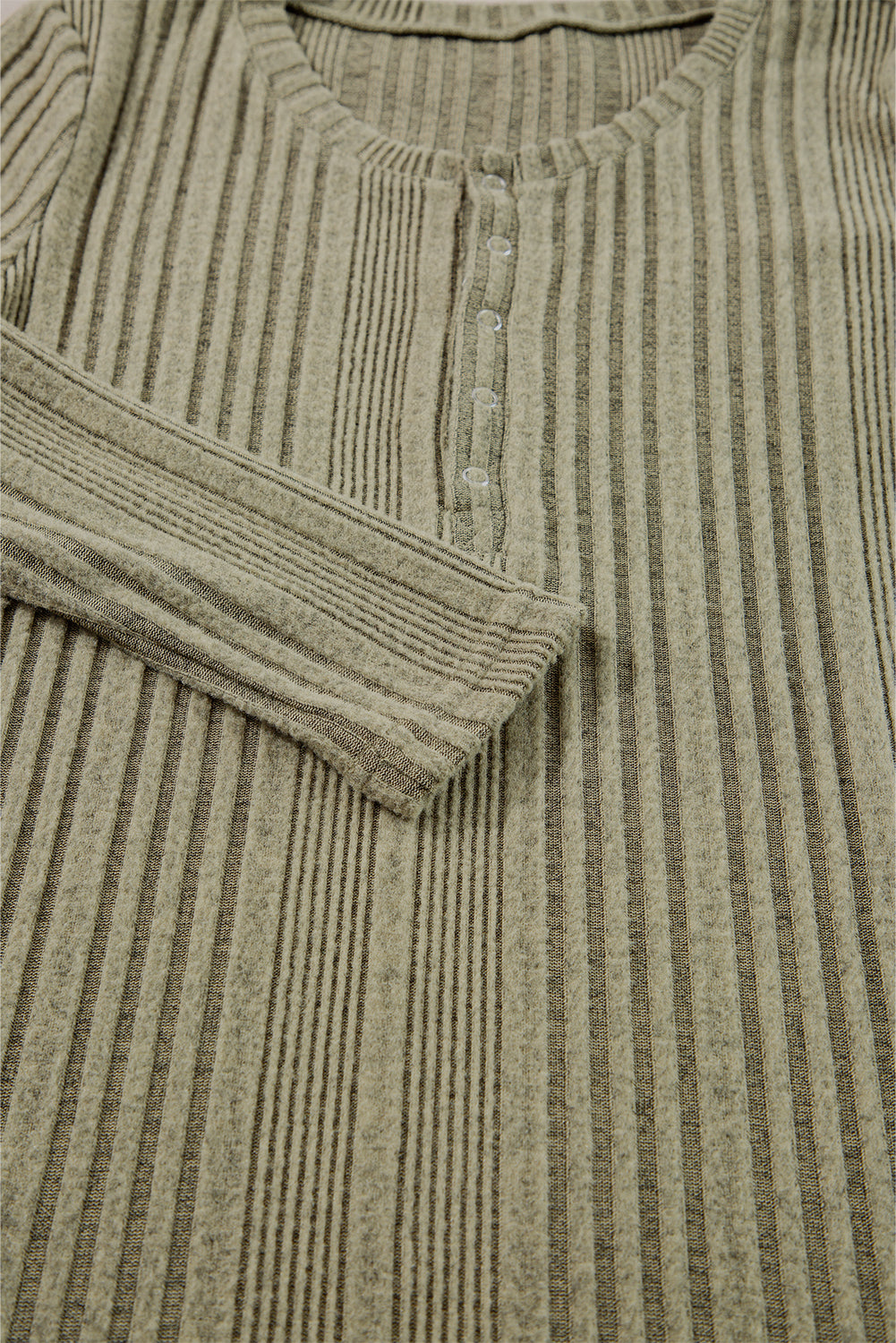 Jungle Green Ribbed Knit Half Button Slim Fit Blouse