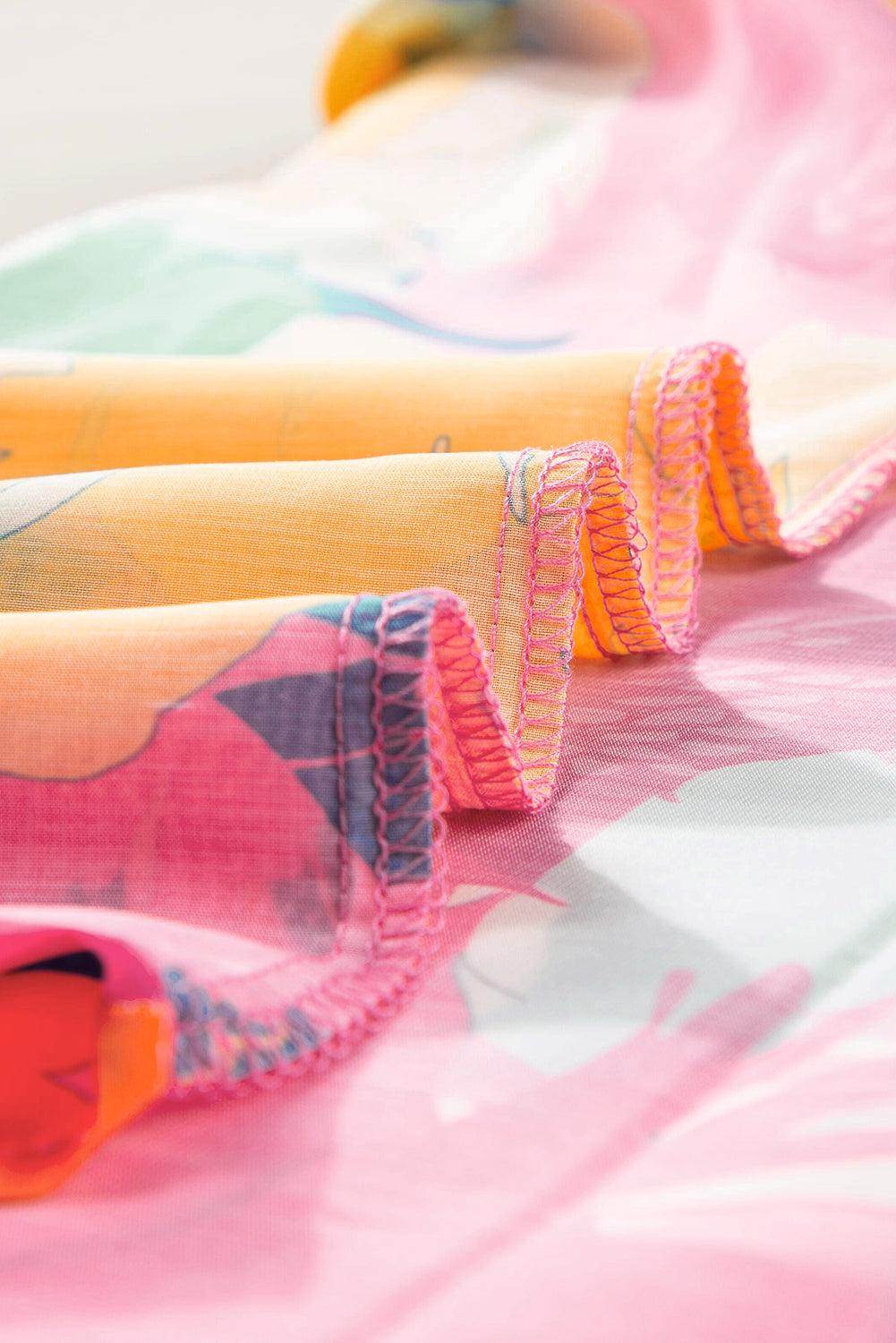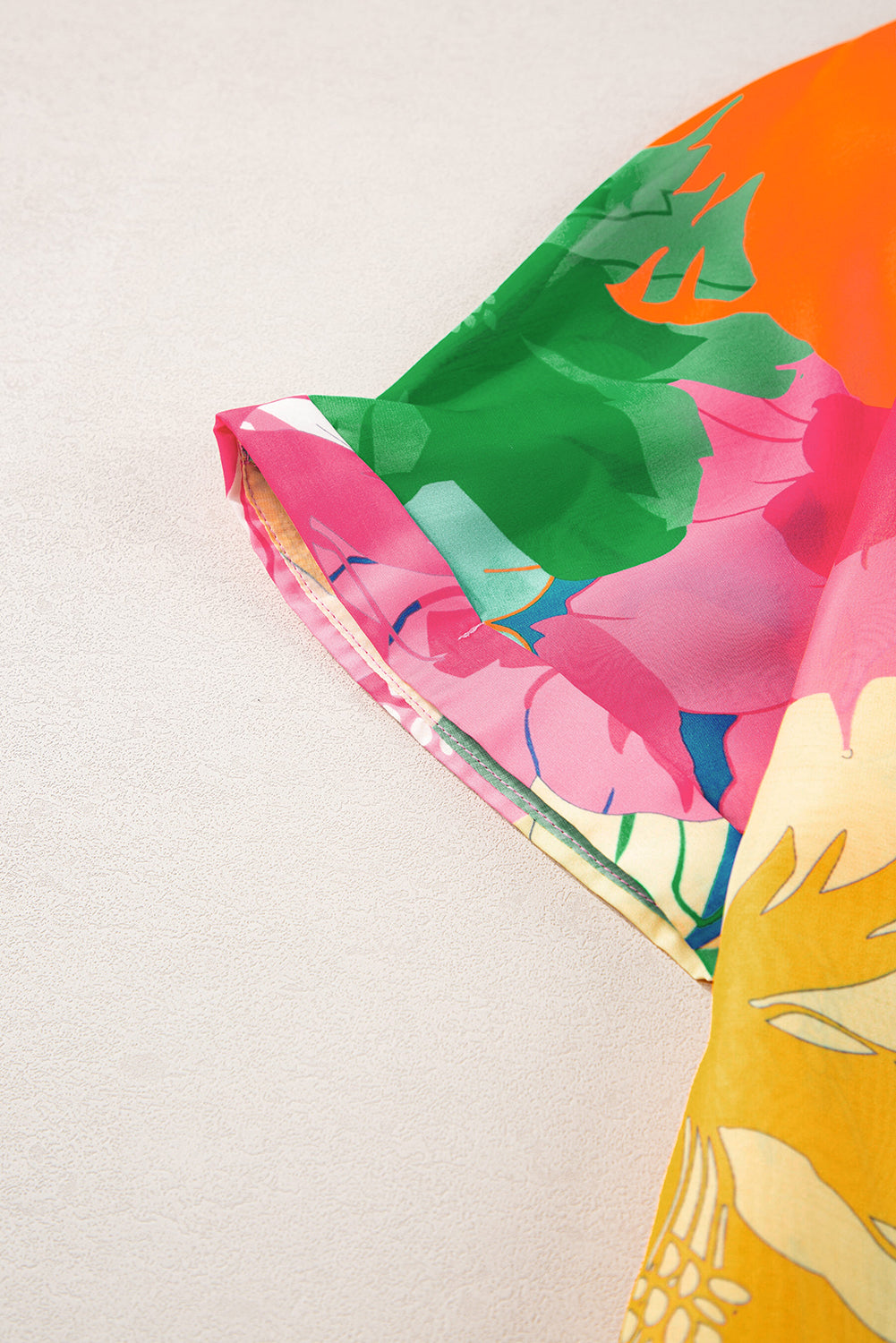 Multicolour Floral Print Folded Short Sleeve Shirt