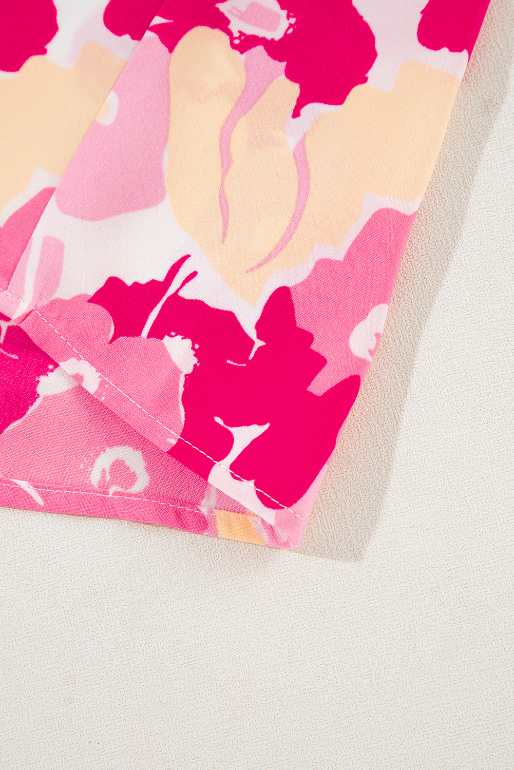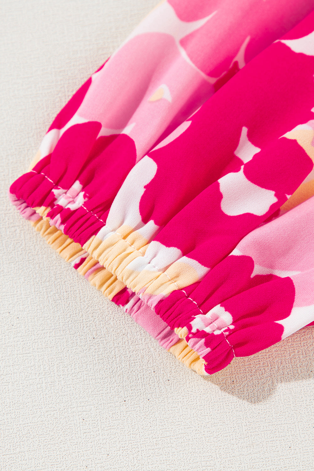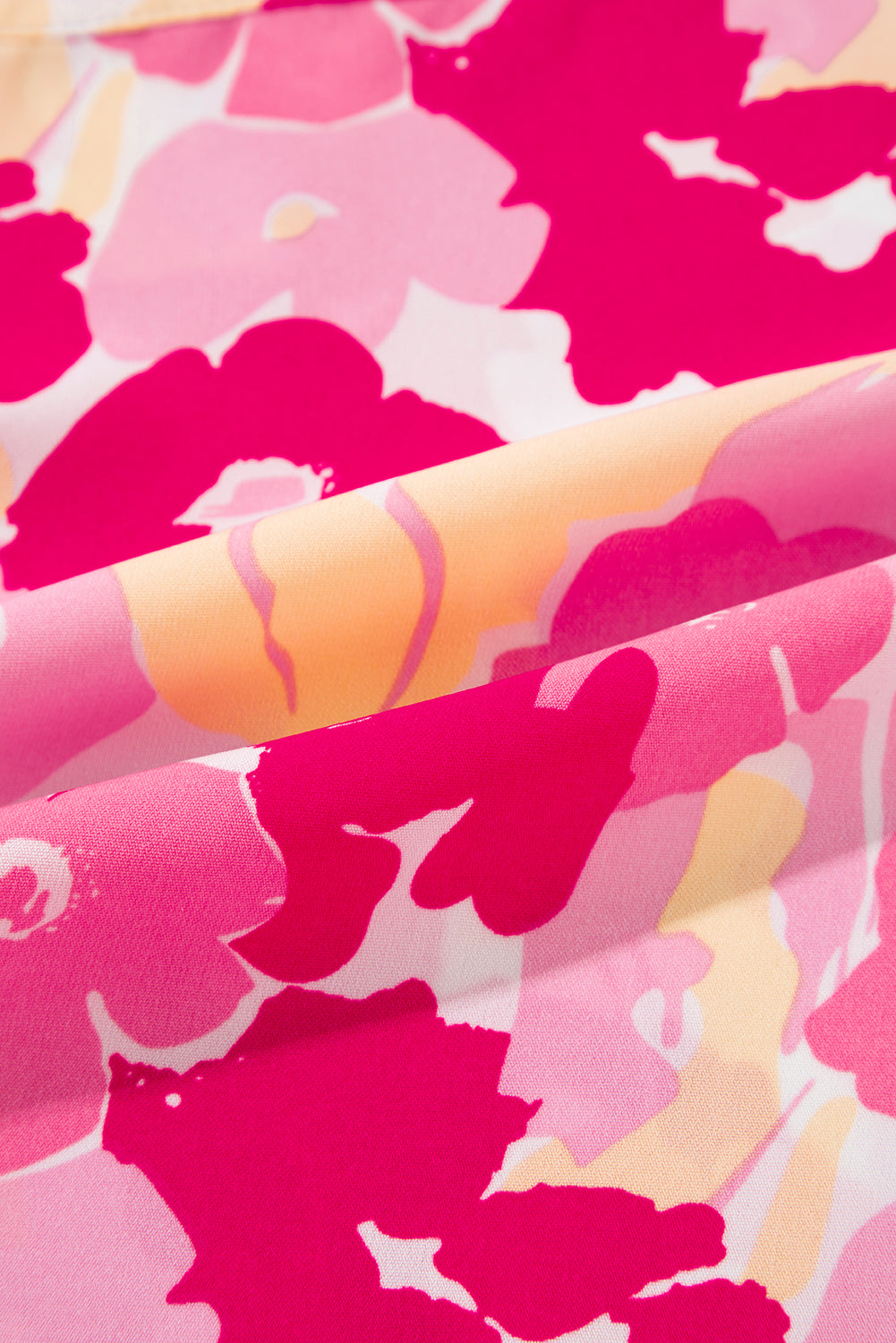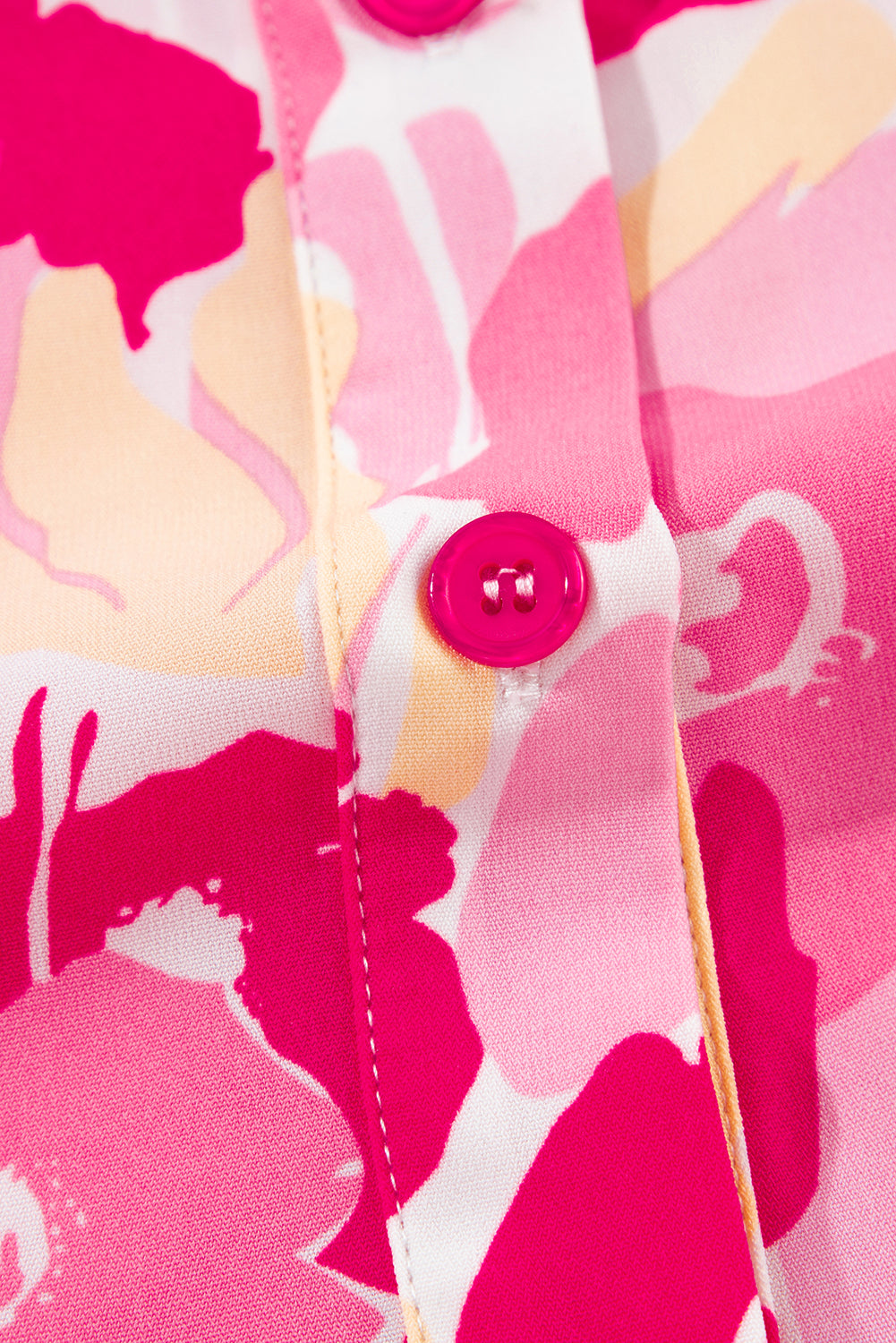 Pink Blooming Floral Print Puff Sleeve Buttoned Shirt