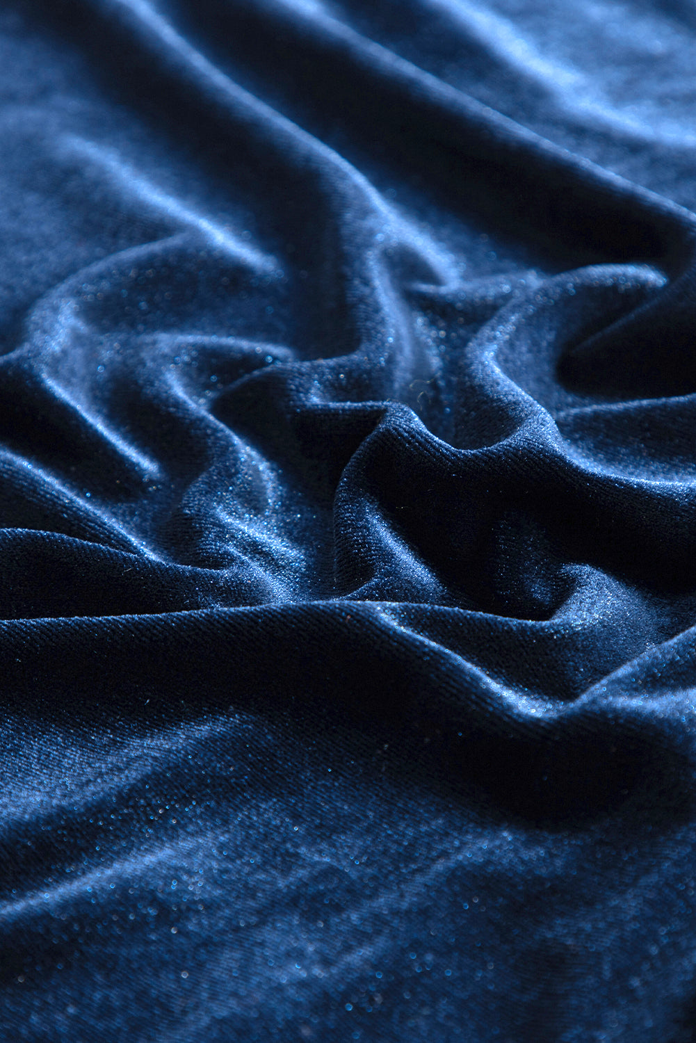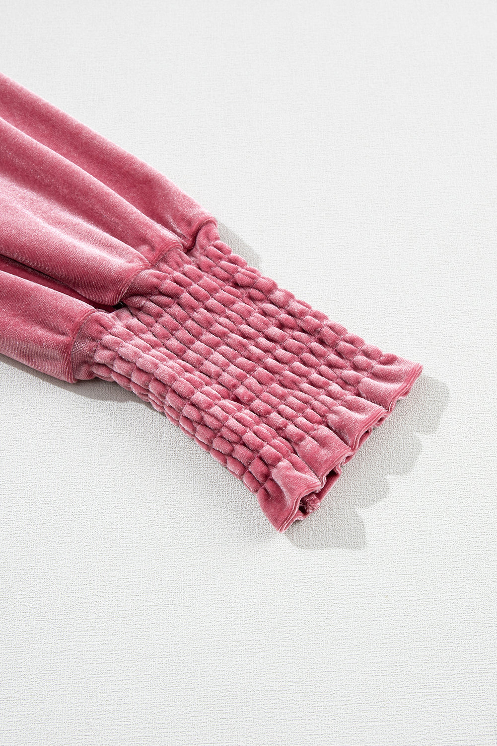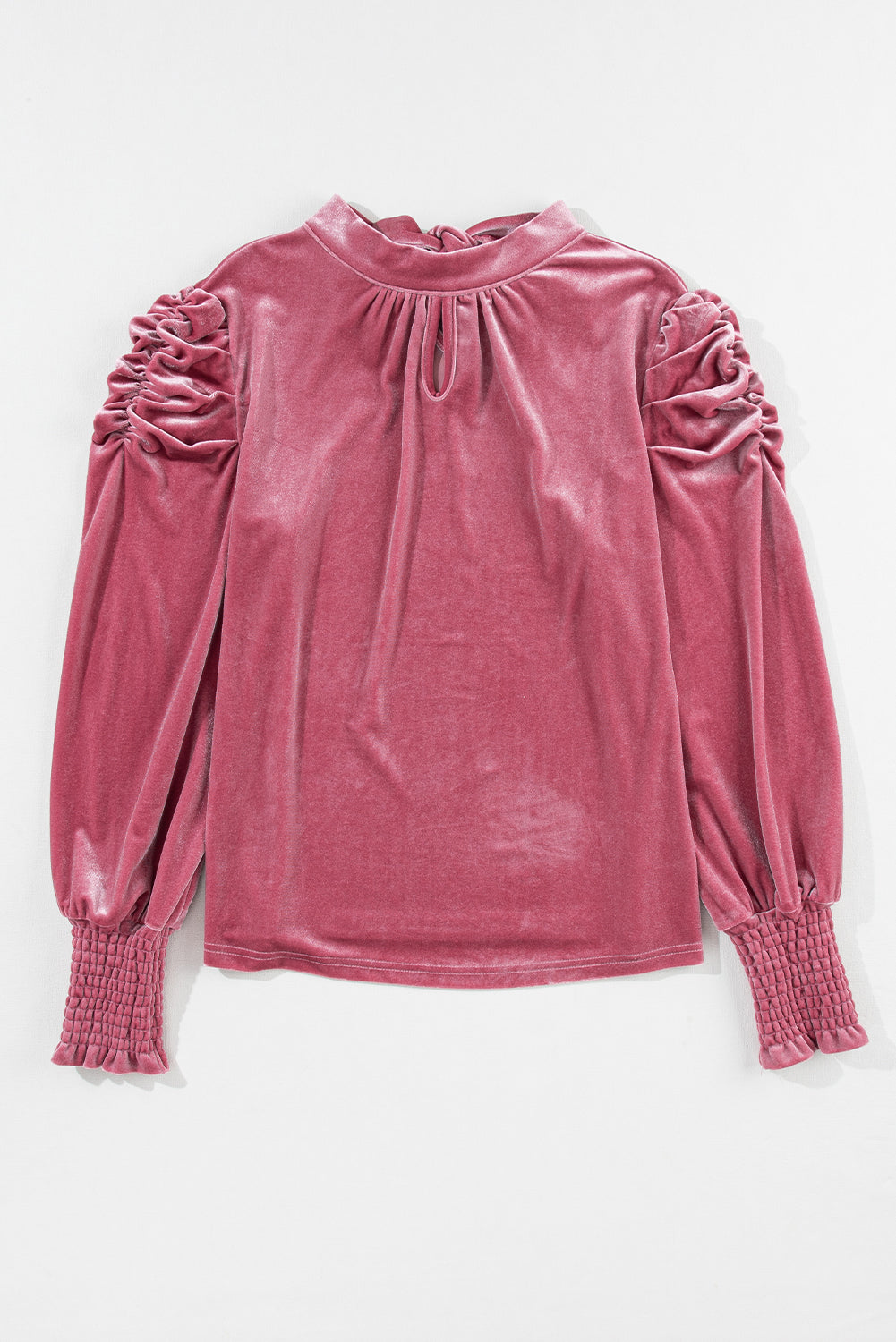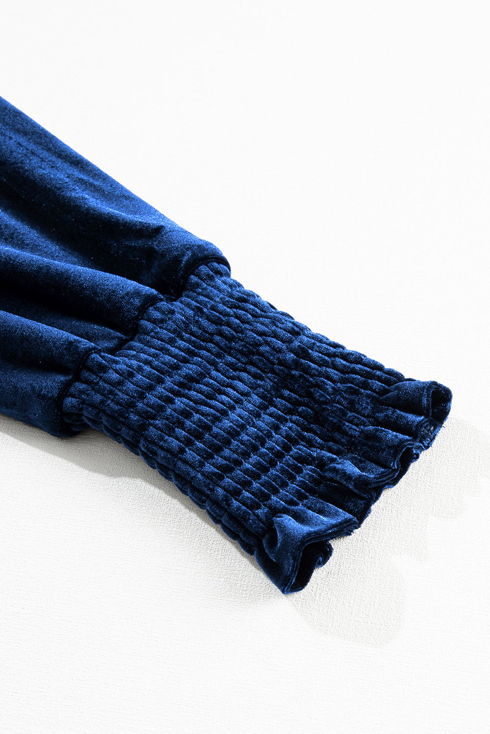 Sky Blue Fiery Mock Neck Puff Sleeve Velvet Blouse