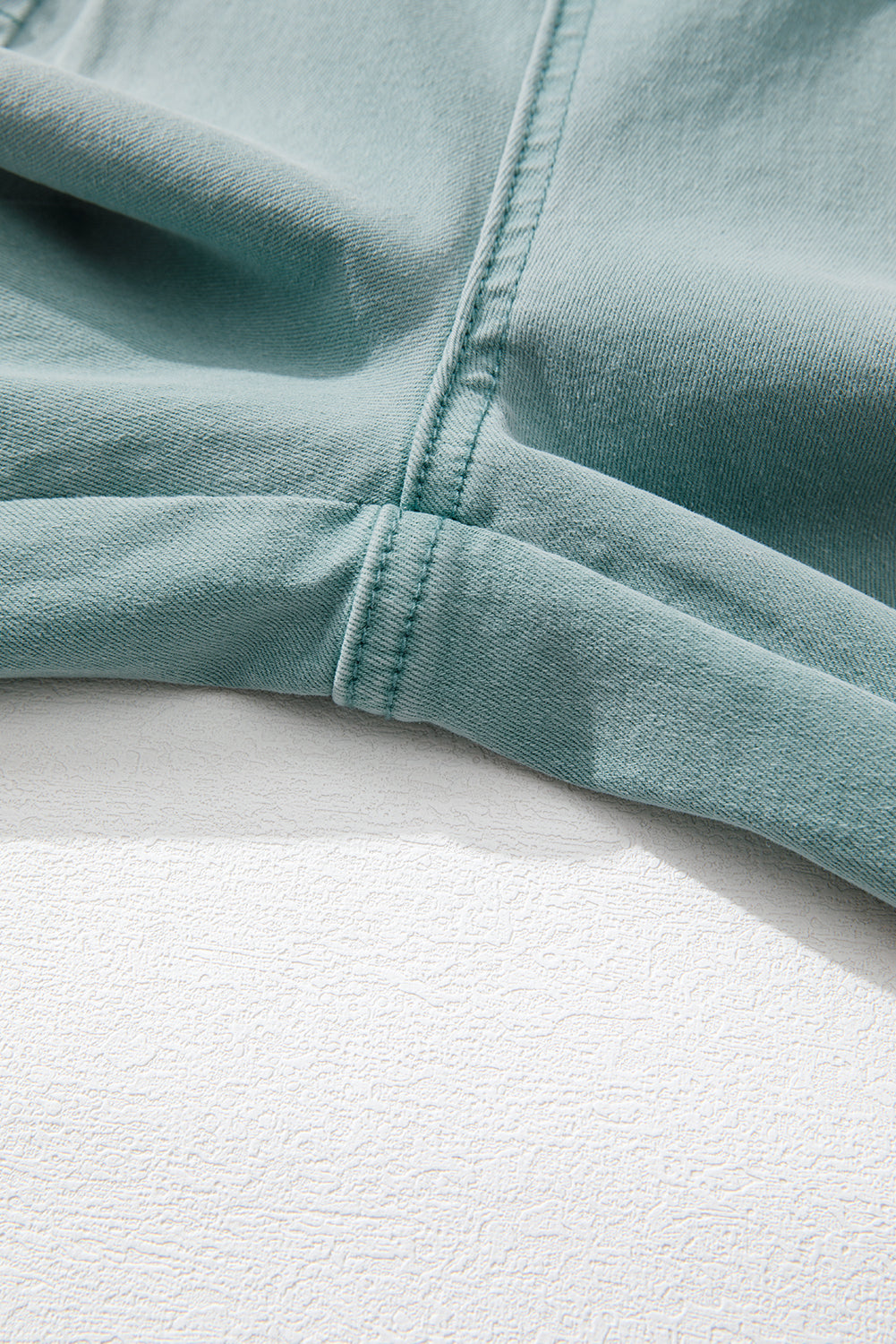 Smoke Green Mineral Wash Drawstring High Waist Wide Leg Jeans