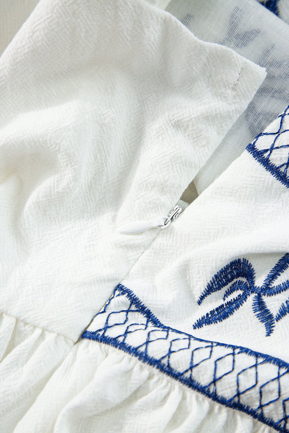 White Embroidered Bust Square Neck Peplum Blouse