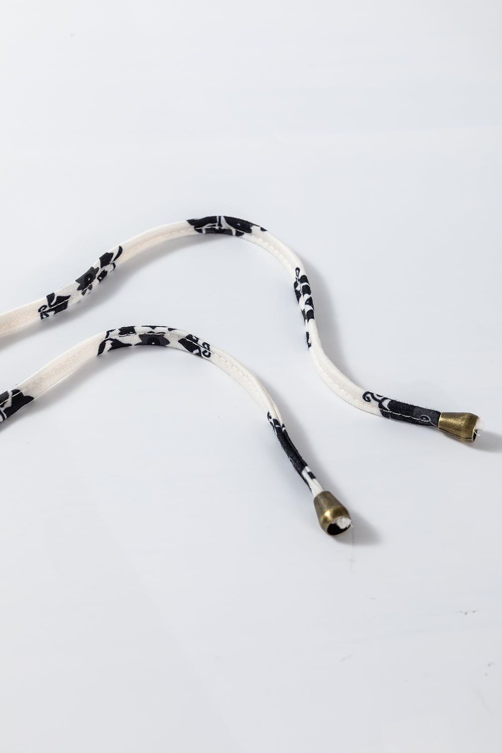 White Printed Split Neck Bubble Sleeve Loose Blouse